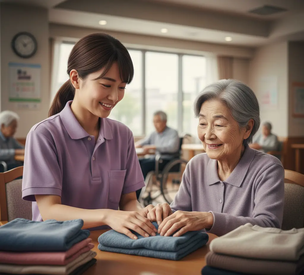 「自分は役に立っている」という感覚(自己有用感)は、周辺症状を劇的に落ち着かせます 洗濯物を畳む、テーブルを拭くなど、その方が得意だったことを「お願い」する形で生活に取り入れます 介護施設では利用者の洗濯物が多く職員が全員の分を畳んでいると他の業務が出来なくなり後に時間に追われる状況を作ります 一緒に洗濯物を畳んで利用者のたたみ方を労い信頼関係を深めていくことがいいでしょう この行為がレクリエーションの一環や手作業となり楽しい時間を作ることが出来ます