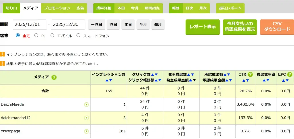 ●もしもアフィリエイト wordpress記事、Xを活用(約3週間)